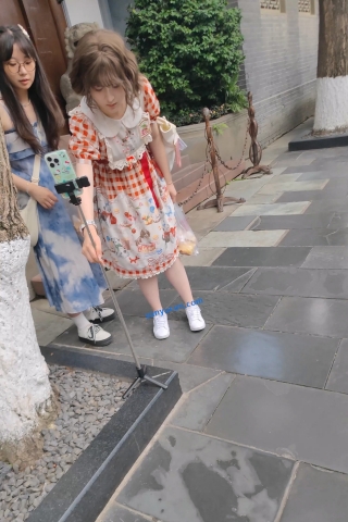 XM212白色连衣裙小姐姐和闺蜜逛街,黑色内内
