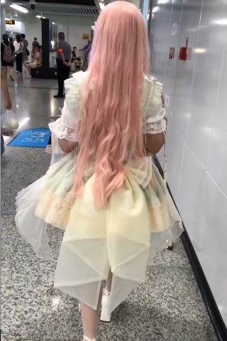 TK231-粉发lo娘蝴蝶结白丝开闪