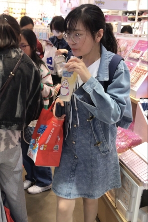 TK073原创CD 牛仔裙眼镜妹薄丝白N,开伞