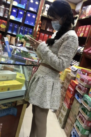 TK031原创CD 超薄肉丝格裙妹子开伞