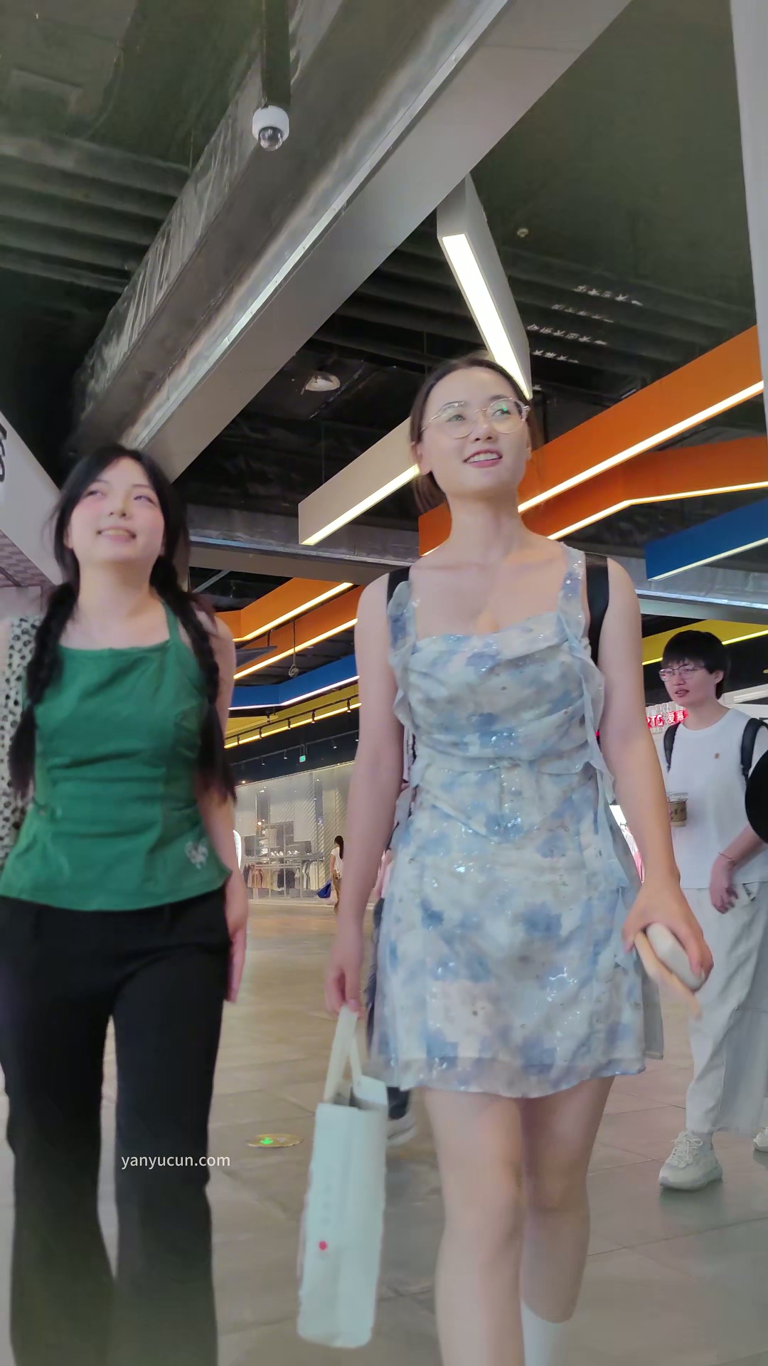 XM304蓝色蕾丝连衣裙带眼镜小姐姐和同学逛街,白色内 ...