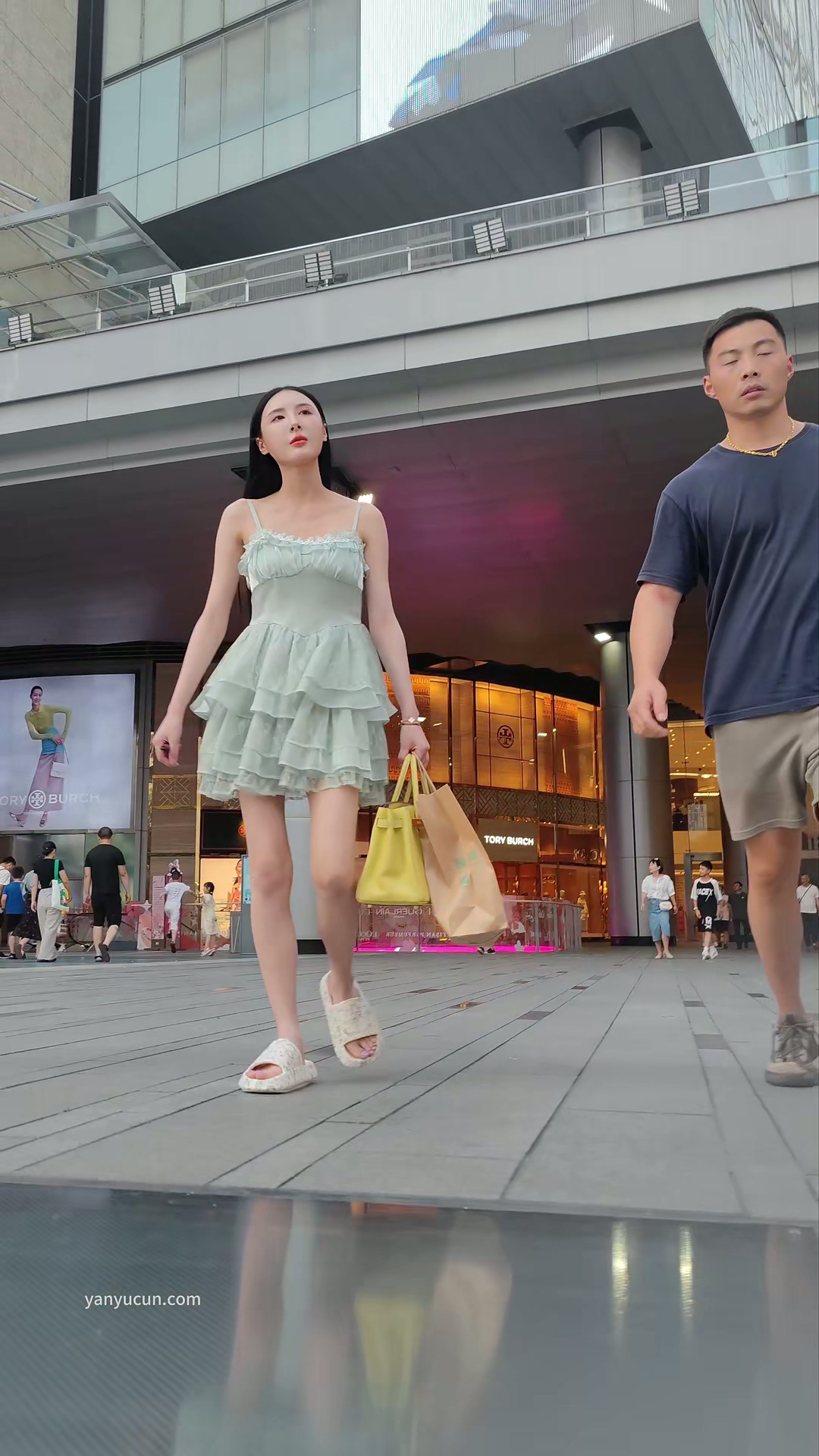 XM312绿色连衣裙极品美女和朋友出来逛街,一次性纸尿裤 ...