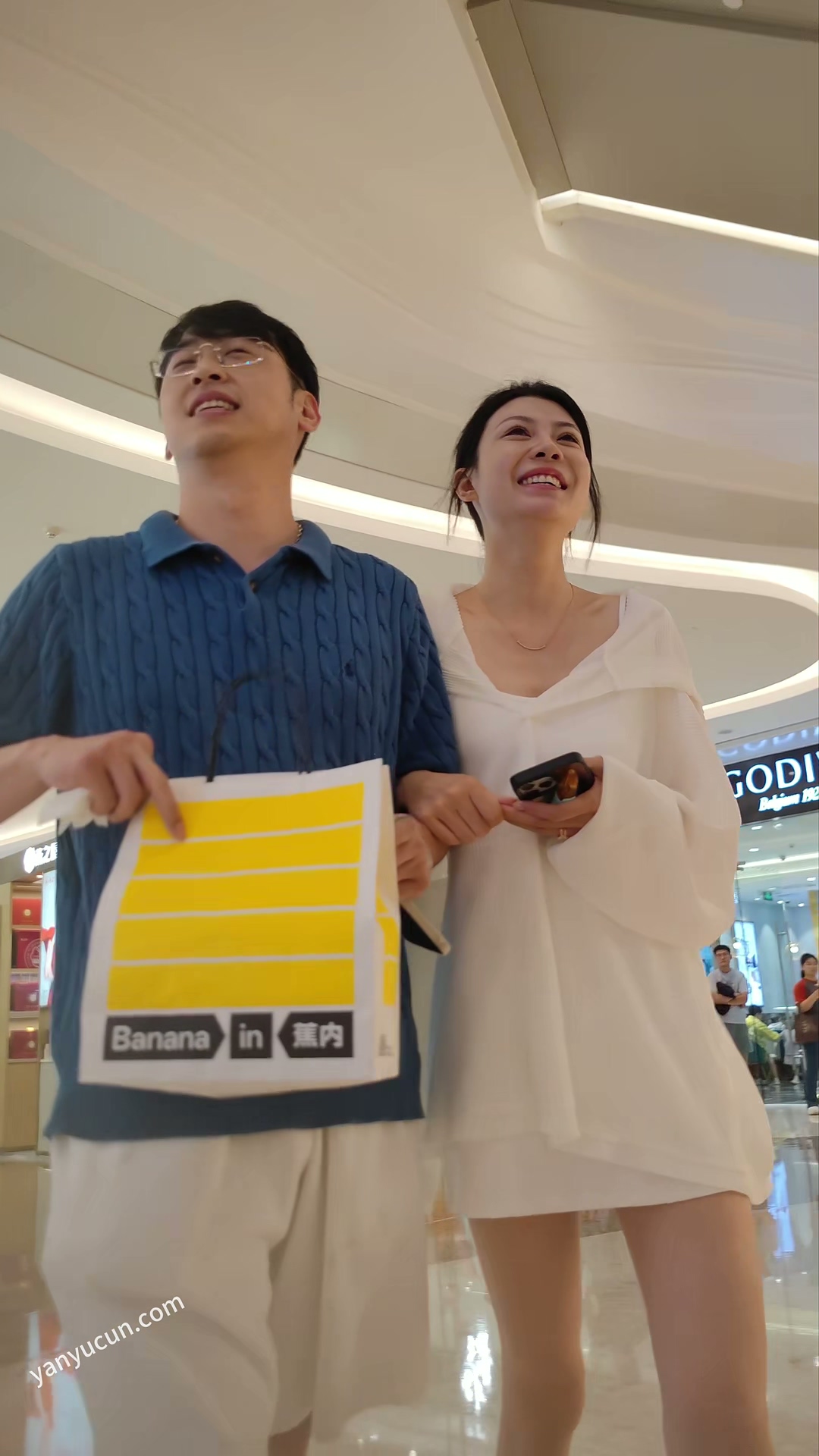 XM375白色连衣裙少妇和老公逛街,黑色窄内 ...