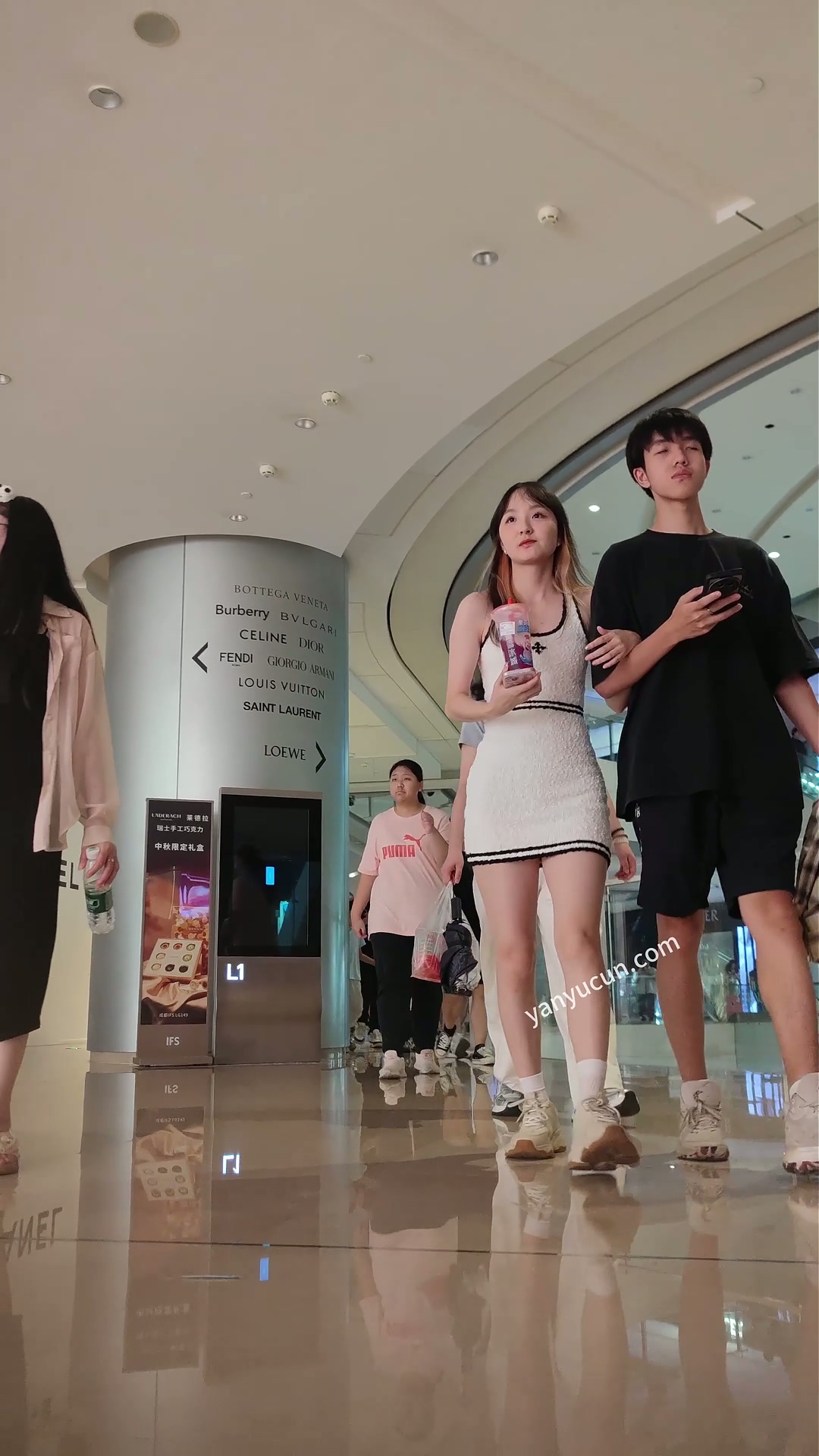 XM411白色包臀裙极品美女和男朋友逛街,黑色窄内 ...