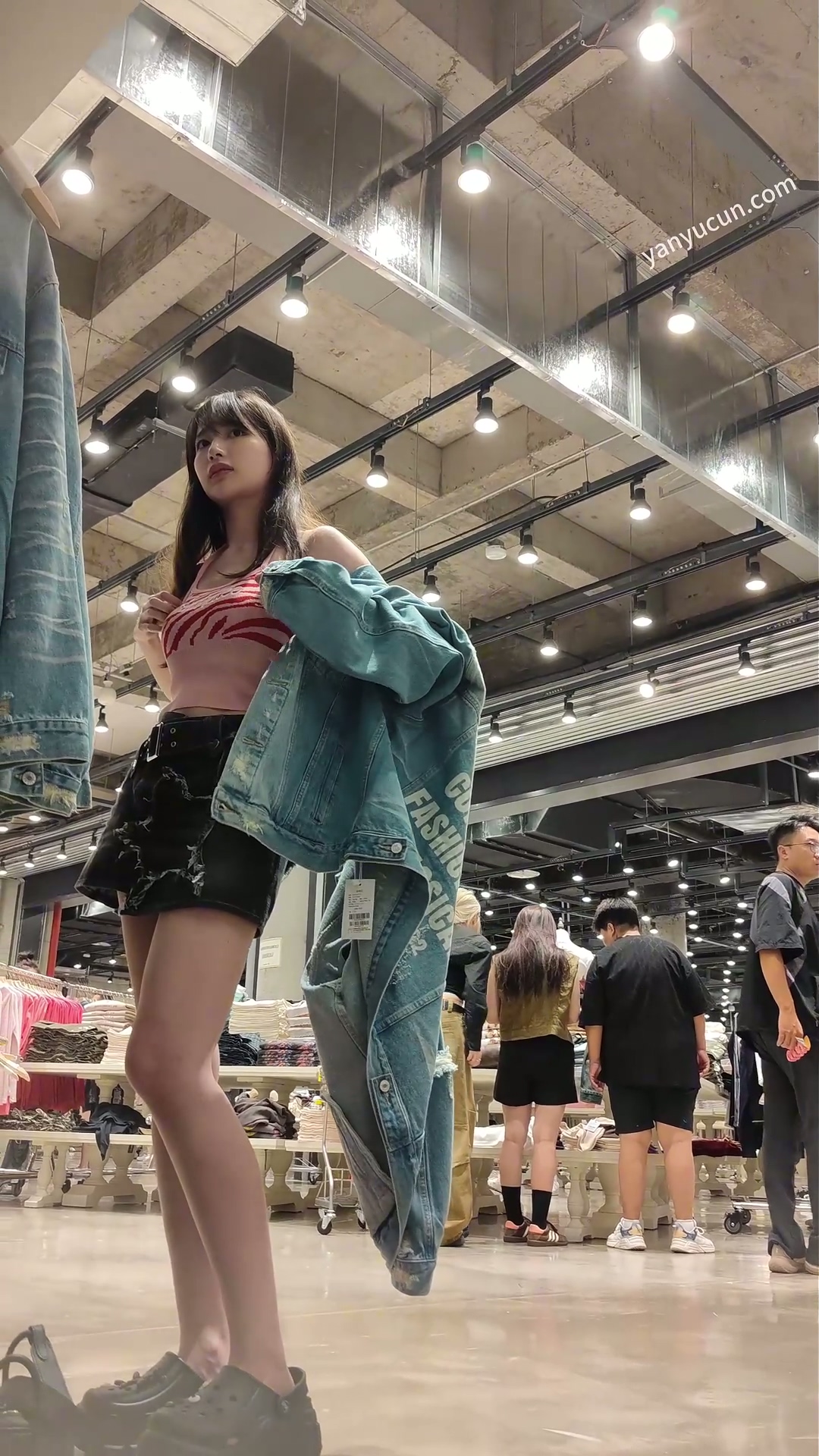XM439牛仔短裙超极品美女逛街买衣服,粉白内内 ...