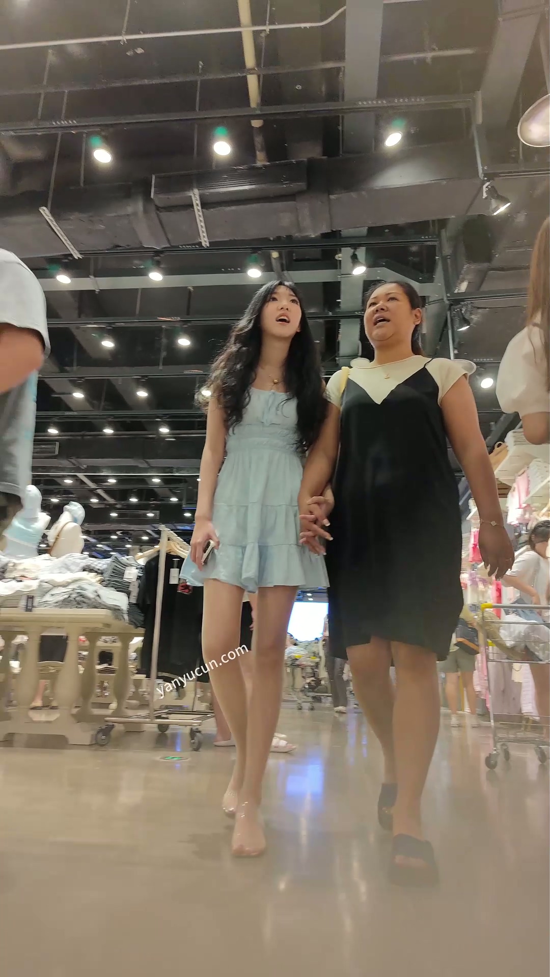 XM478蓝色连衣裙肉色丝袜极品身材美女和妈妈逛街,白色内内