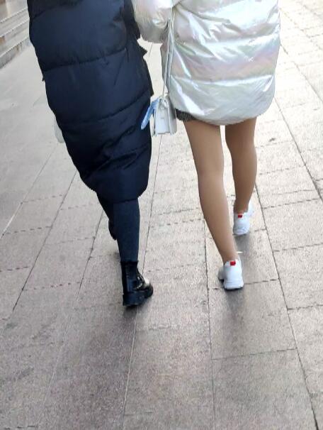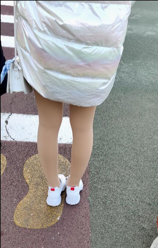 4k跟拍羽绒服过马路肉丝
