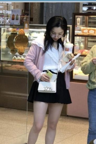 trump1319【KFC】过膝白色靓女和闺蜜逛街·内衬包不住短裙灰色窄内