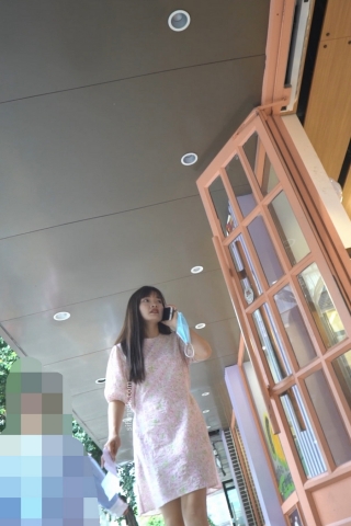 (BC-AA-443)花裙小姐姐上扶梯被CD..橙边白内贴脸拍