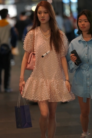 jx991街拍粉色百褶裙高跟鞋 20-10-26-82P