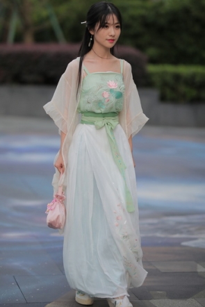 柳袖轻舞如飞燕,雨中美人恋长衫。