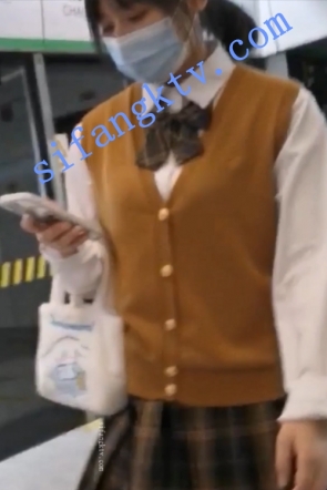 街拍站台格子裙肉丝