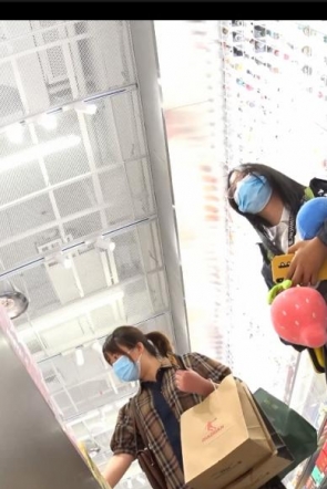 【YZWCD】YC334牛仔裙小姐姐弯腰选商品!