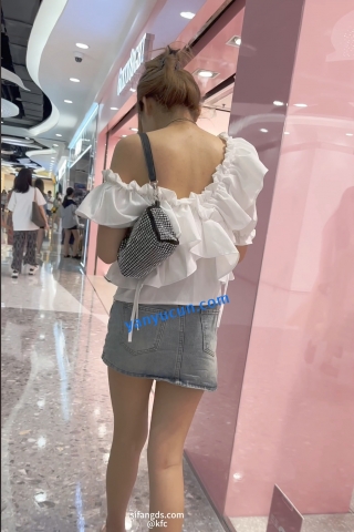 trump971【KFC】短裙露背装美女笑着逛街。镶钻网袜白色薄内贴脸CD
