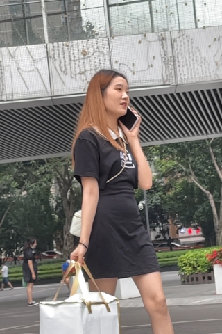 XM060黑色白点连衣裙少妇等餐期间,抄底白色窄内