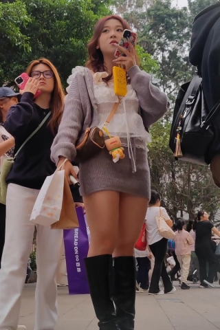 trump1005【KFC】短裙COSER学生妹逛街。灰白色内内可爱系