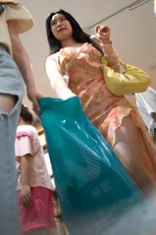 kc976淡绿连衣裙小姐姐逛超市,淡青窄N夹进肥臀
