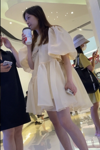 【KXCD】235白色连衣裙少妇带着儿子逛街,白色NN漏M
