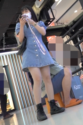 kc957牛仔连衣裙小姐姐逛商场,薄丝黑N夹翅膀