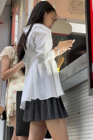 【XPCD】050☆☆蓝色连衣裙美女和老公一起逛街抄底白色内内