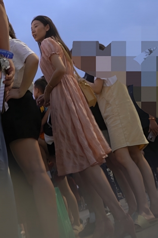 kc904粉长裙美少妇看表演,微透米白N包裹肉臀
