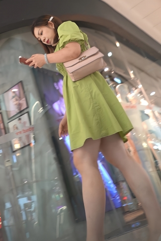 kc900绿裙小姐姐和朋友逛商场,干净淡粉N包裹肉臀