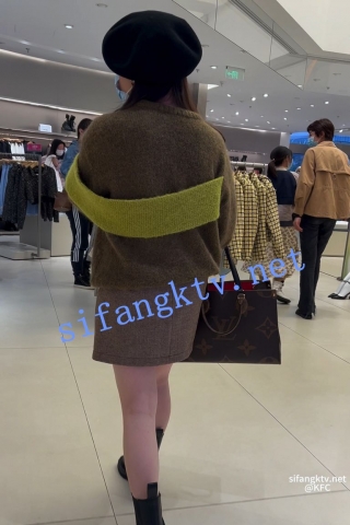 trump716美女独自逛街。上半身加绒外套。下半身短裙骚丁