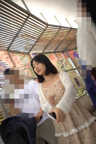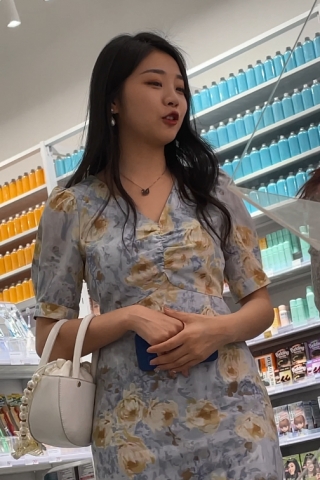kc1096逛公园的碎花长裙少妇,米白NN包裹肥臀