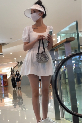 (BC-B-086)白色连衣裙小姐姐买奶茶..肉色丝袜配窄内
