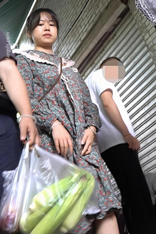 (BC-AA-134)小吃街抄底粉裙美女..粉色花纹纸内裤当着男友面拍