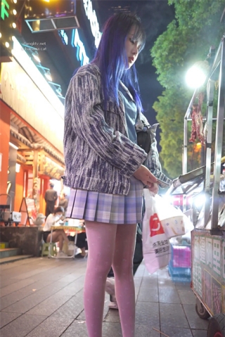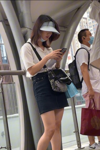 (BC-AA-122)超短百褶裙美女逛街..丝袜裆部都露到外面了