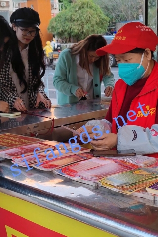 【KXCD】342白色短裙小姐姐诶街边玩刮刮乐抄底,蓝色内内