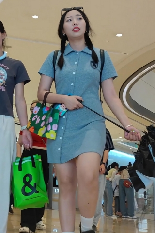 【KXCD】394灰色连衣裙双马尾小姐姐和闺蜜逛街,白色内内