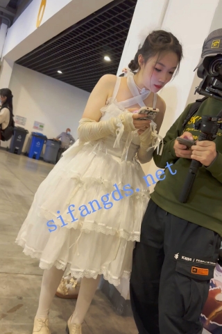 trump869【 KFC 】洛丽塔裙学生和闺蜜逛街拍照。白色过膝袜白色窄内