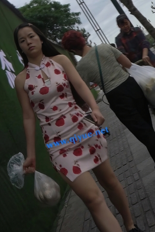 kc1281(空城原创)买早餐的短旗袍小姐姐,干净微透粉N包裹肉臀