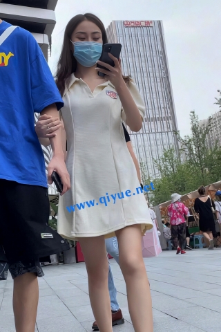 【KXCD】483白色连衣裙美女和男朋友逛街,蓝色内内