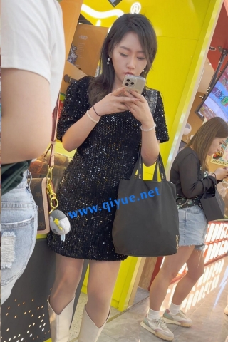 trump900【KFC】黑色长裙少妇独自逛街。肉色丝袜白色内内前后CD