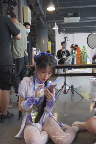 【xxn-216】古装旗袍展台模特..高开衩配花纹白丝..内裤露在...