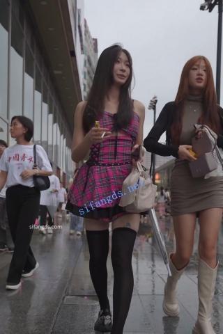 XM096黑色连衣裙美女和闺蜜逛街,白色内