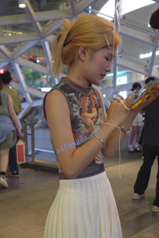 (BC-AA-387)百褶裙金发小姐姐逛街..男友面前正面CD条纹内