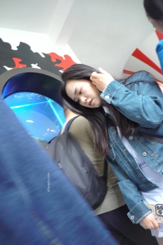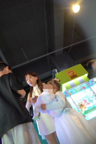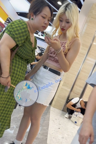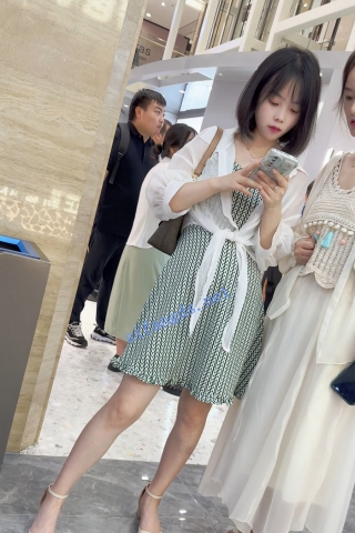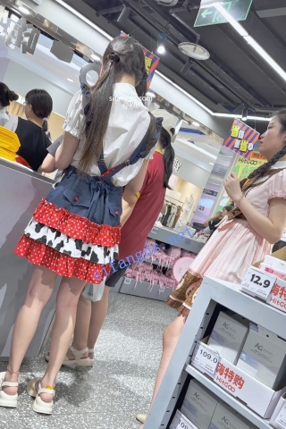 (BC-AA-378)花裙小姐姐和姐妹逛商场..浅蓝内被柜台灯光照亮