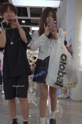 (BC-AA-369)制服jk小姐姐穿透明肉丝逛街..男友面前抄底卡通内