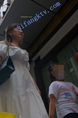 kc356(空城原创)带孩子逛商场的碎花裙少妇,薄丝白N包裹肉臀