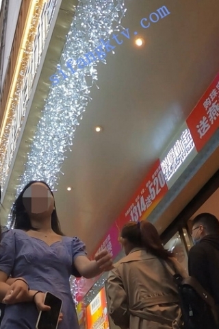 kc363(空城原创)独自逛街的蓝色连衣裙妹子,肉色小N包裹翘臀