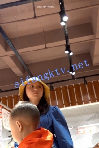 kc408(空城原创)带孩子逛超市的蓝长裙少妇,淡粉NN包裹肉臀