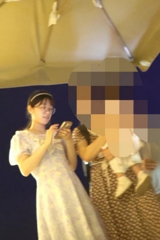 kc1488(空城原创)连衣裙眼镜少妇和家人逛街,天蓝N包 ...