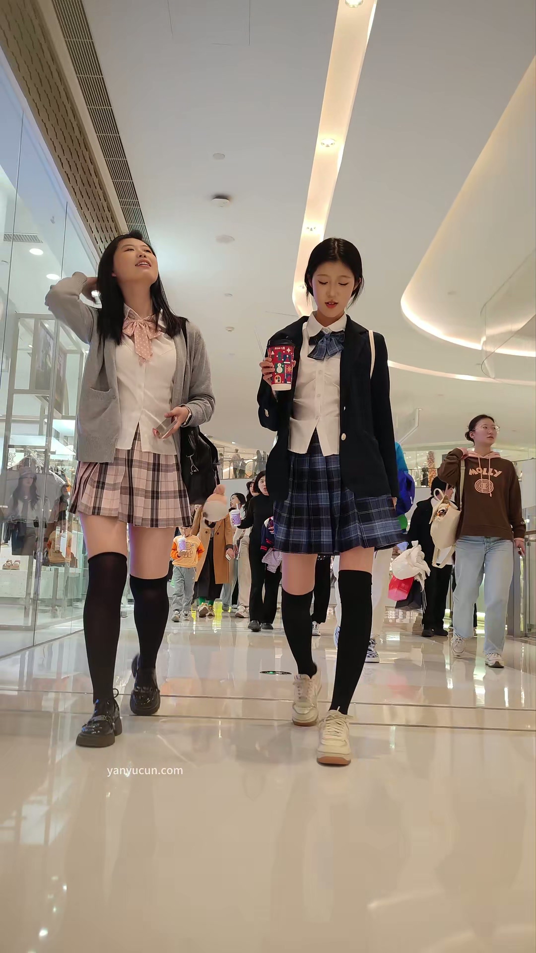 XM321蓝色JK女大学生和同学逛街,白色内内 ...