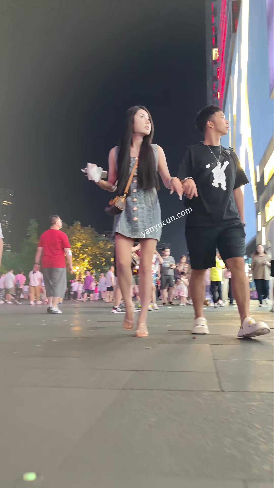 XM355蓝色连衣裙极品美女和男朋友逛街买东西,白色内内 355