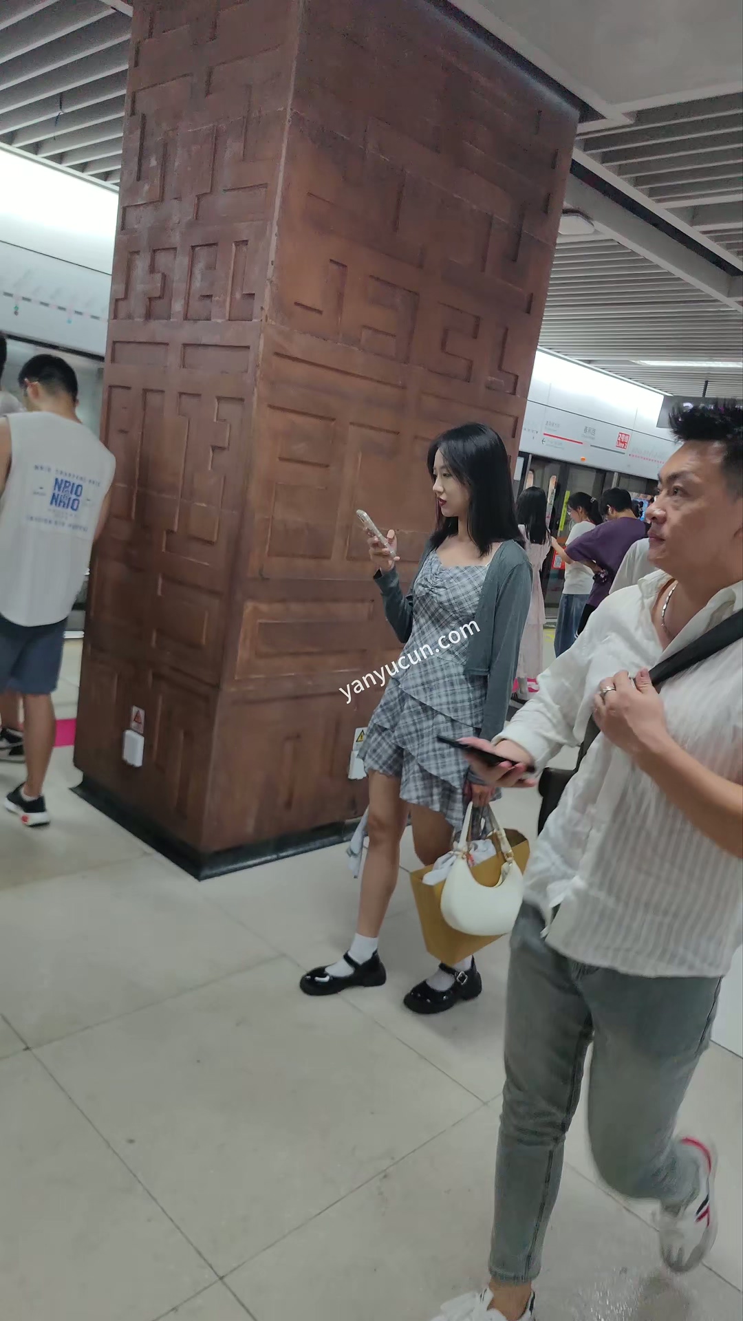 XM356灰色连衣裙小姐姐坐地铁,白色内内