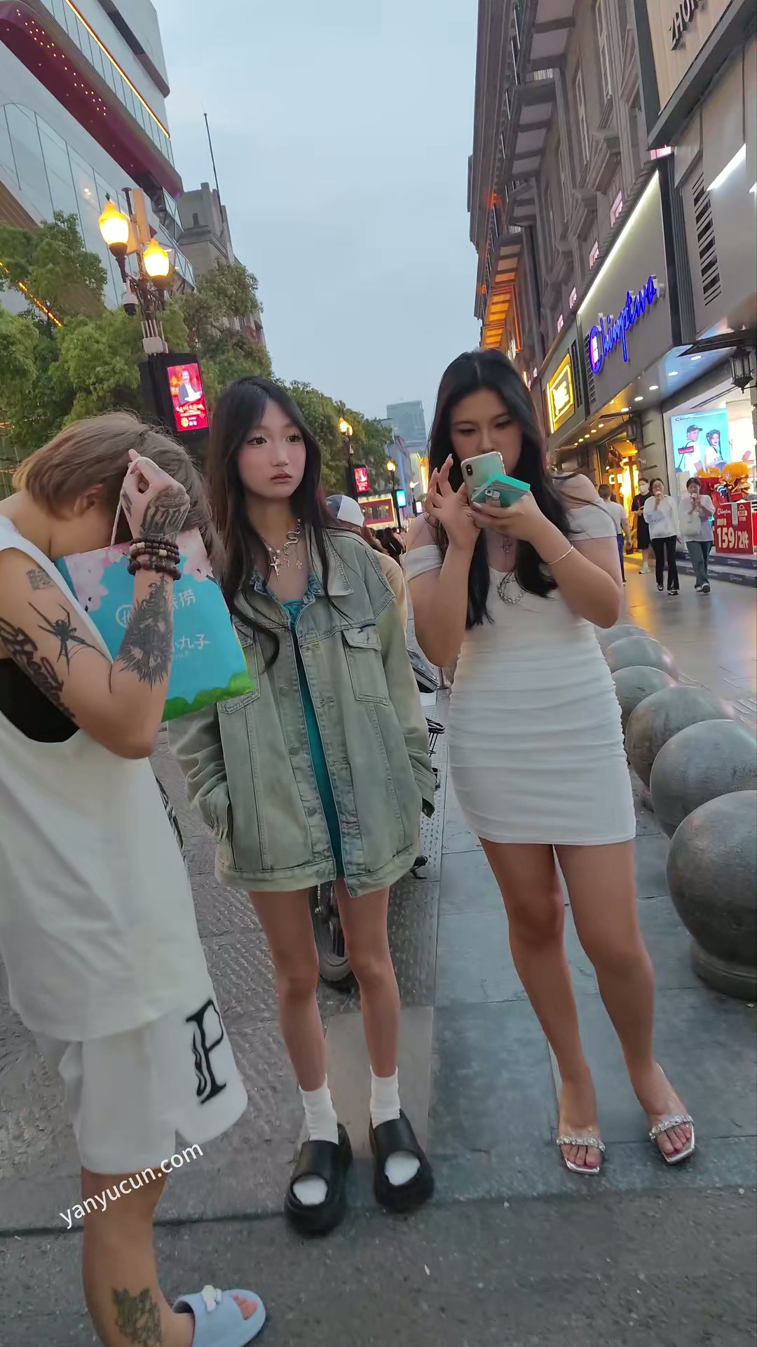 XM361蓝色连衣裙小美女和男朋友闺蜜逛街,白色内内